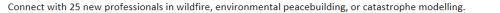 Connect with 25 new professionals in wildfire, environmental peacebuilding, or catastrophe modelling.
