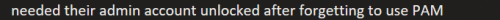 24. Needed their admin account unlocked due to PAM