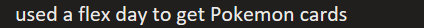 11. Has left work to get Pokemon cards