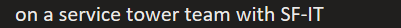 9. On a service tower team with SF-IT