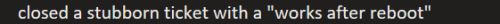 8. Closed a stubborn ticket with a "works after reboot"