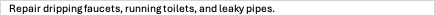 B-Repair dripping faucets, running toilets, and leaky pipes.