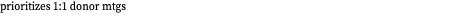 9. prioritizes 1:1 donor mtgs