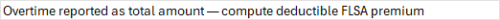 Overtime reported as total amount — compute deductible FLSA premium