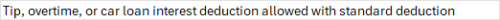 Tip, overtime, or car loan interest deduction allowed with standard deduction
