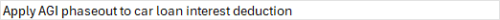 Apply AGI phaseout to car loan interest deduction