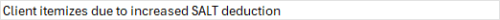 Client itemizes due to increased SALT deduction